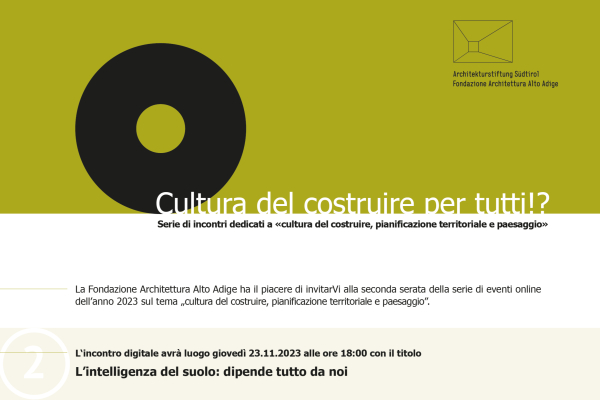 Die Architekturstiftung Südtirol lädt Sie ganz herzlich zu einem weiteren Abend der digitalen Veranstaltungsreihe zum Thema „Baukultur, Raumordnung und Landschaft“ im Jahr 2023 ein.