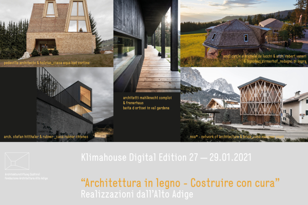 Es sprechen die Architekten von 5 ausgewählten Werken. Wir präsentieren 5 Holzhäuser, die kürzlich in Südtirol gebaut wurden. Bereichert wird die Diskussion durch die an der Ausführung maßgeblich beteiligten Zimmereien bzw. Holzbaufirmen, die mit ihrem exzellenten Know-how wichtige Akteure der Südtiroler Architektur sind und deren Qualität garantieren.