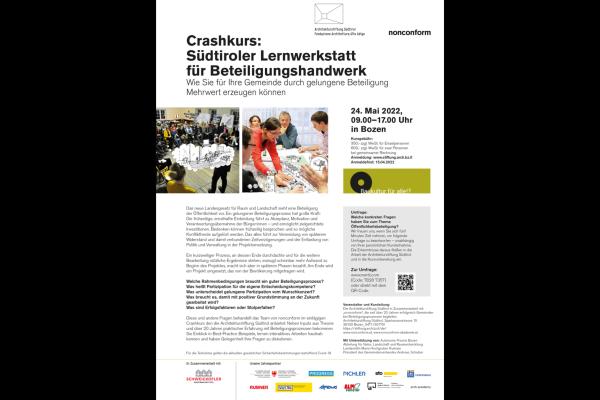 ONSITE Lernwerkstatt für Bürgerbeteiligung der Architekturstiftung Südtirol für Gemeinden, Techniker und Interessierte Wie Projekte auf Gemeindeebene besser gelingen Das neue Landesgesetz für Raum und Landschaft sieht die Beteiligung der Öffentlichkeit vor. Das hat für die Gemeinden viele Vorteile: Die frühzeitige, ernsthafte Einbindung führt zu Akzeptanz, Motivation und Verantwortungsübernahme der Bürgerinnen und Bürger. Mit dem Workshop „Südtiroler Lernwerkstatt für Beteiligungshandwerk“ können sich Bürgermeister, Gemeinderäte und Gemeindetechniker das nötige Werkzeug aneignen um für ihre Gemeinde Mehrwert durch gelungene Beteiligung zu erzeugen. Die Architekturstiftung Südtirol und nonconform bieten in Zusammenarbeit mit dem Amt für Landschaft und Raumentwicklung die Lernwerkstatt Bürgerbeteiligung an. In bereits mehr als 100 Gemeinden hat das Büro nonconform um Initiator Roland Gruber einen Bürgerbeteiligungsprozess organisiert und geleitet. Die Organisatoren sind überzeugt, dass eine Beteiligung der Menschen vor Ort gerade bei komplexen räumlichen Fragestellungen und Bauaufgaben heute notwendiger denn je ist. Das führt vielfach zu besseren Lösungsansätzen. Bürgerinnen und Bürger kennen ihr Quartier oder ihren Ort am besten und haben vielfach zukunftsweisende Ideen, die eine wesentliche Basis für nachhaltige Lösungen und breite Akzeptanz vor Ort sind.