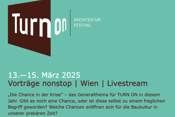 „Die Chance in der Krise” – das Generalthema für TURN ON in diesem Jahr. Gibt es noch eine Chance, oder ist diese selbst zu einem fraglichen Begriff geworden? Welche Chancen eröffnen sich für die Baukultur in unserer prekären Zeit?