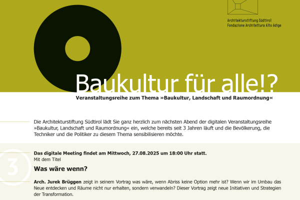 Arch. Jurek Brüggen zeigt in seinem Vortrag was wäre, wenn Abriss keine Option mehr ist? Wenn wir im Umbau das Neue entdecken und Räume nicht nur erhalten, sondern verwandeln? Dieser Vortrag zeigt neue Initiativen und Strategien der Transformation.