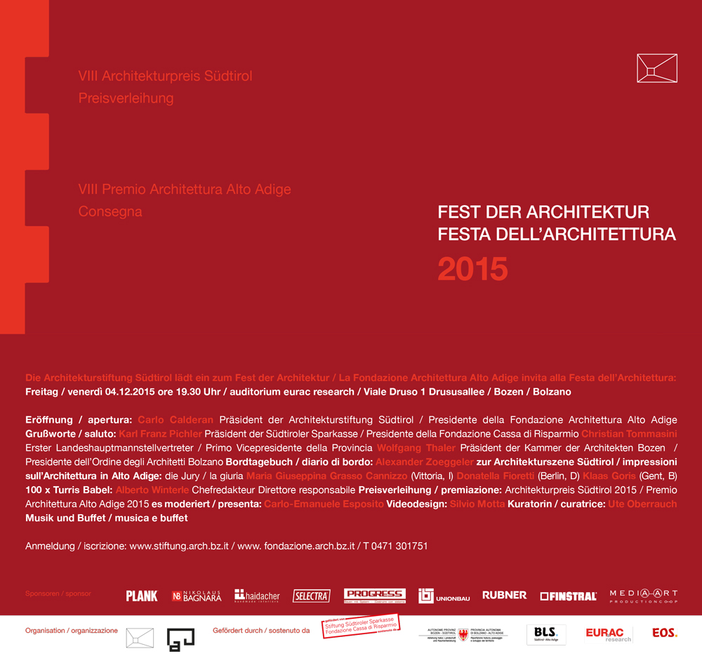 Die Architekturstiftung Südtirol lädt ein zum Fest der Architektur 2015!