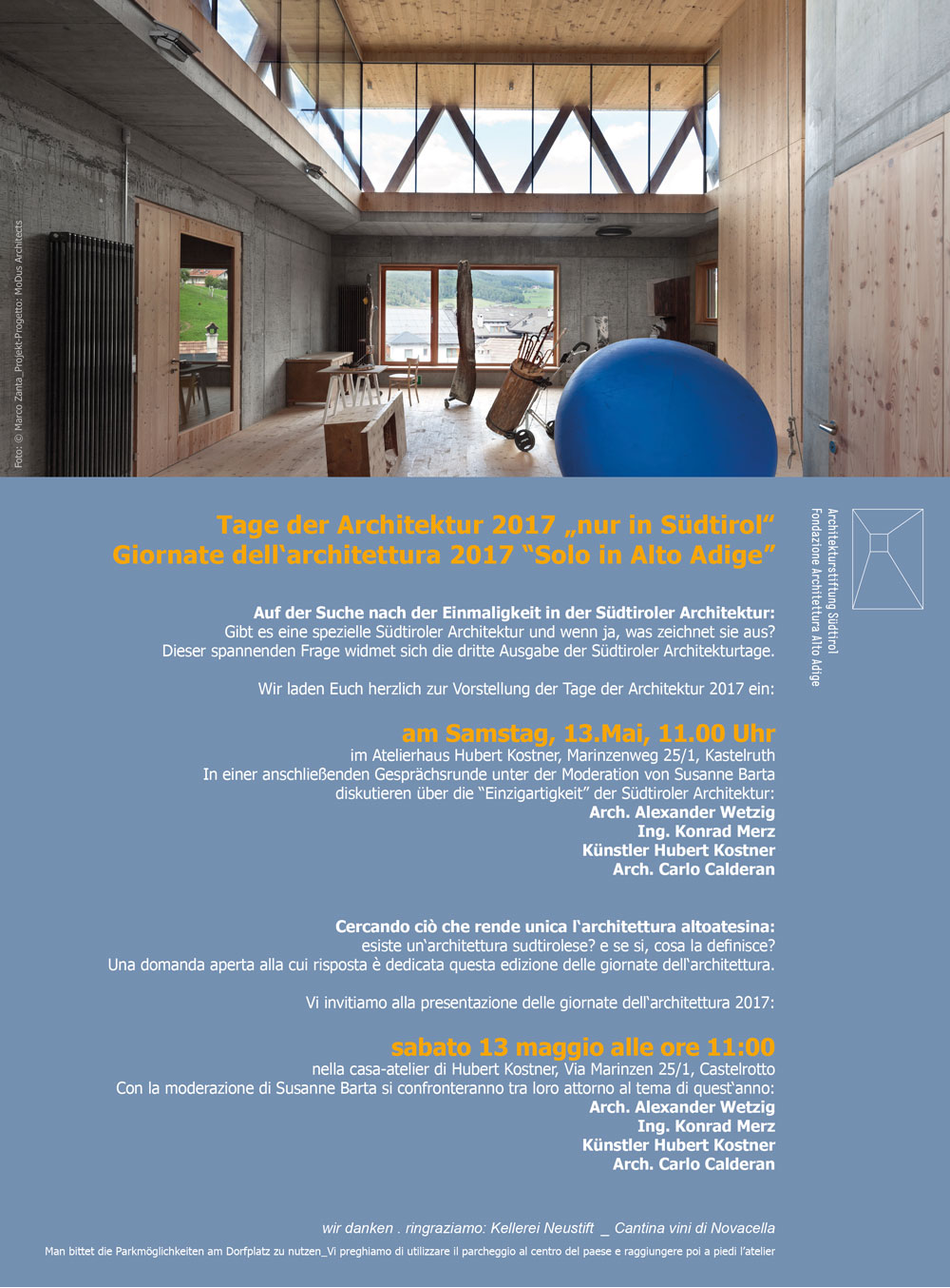 Die Architekturstiftung Südtirol sieht die Initiative „Tage der Architektur“ als ein Kulturereignis, das Verständnis für Architektur erzeugen soll:
